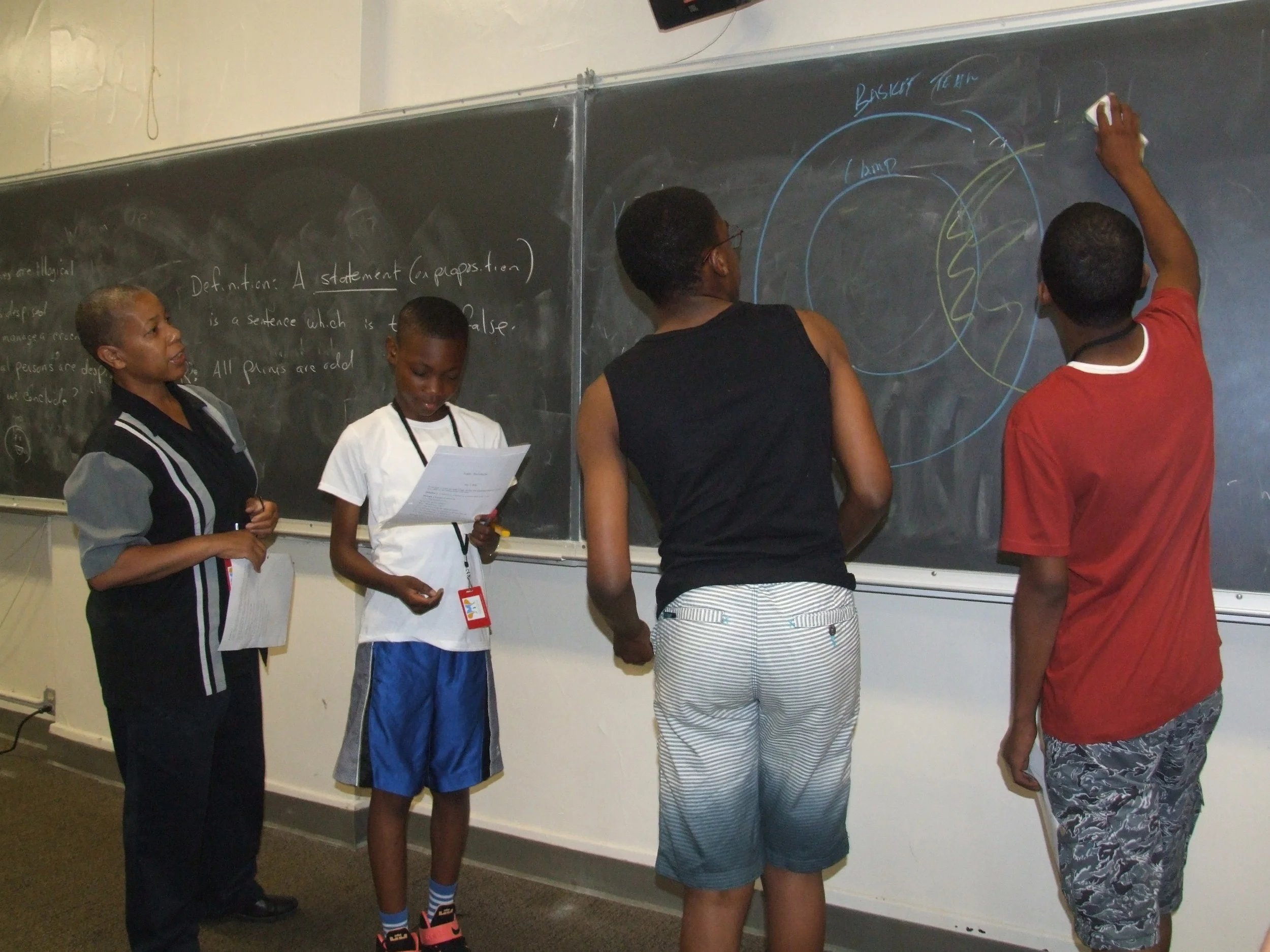 Over the course of the summer, the students become stronger in mathematics and develop much more stamina and insight for solving difficult problems. They learn abstract topics that kids their age don't usually get to see. For example, students have developed for themselves a proof of the infinitude of primes, and they were able to answer subtle questions about it. They mastered binary and understood image encoding. Students from past years have enrolled and succeeded at selective high schools and their teachers report tremendous growth.
